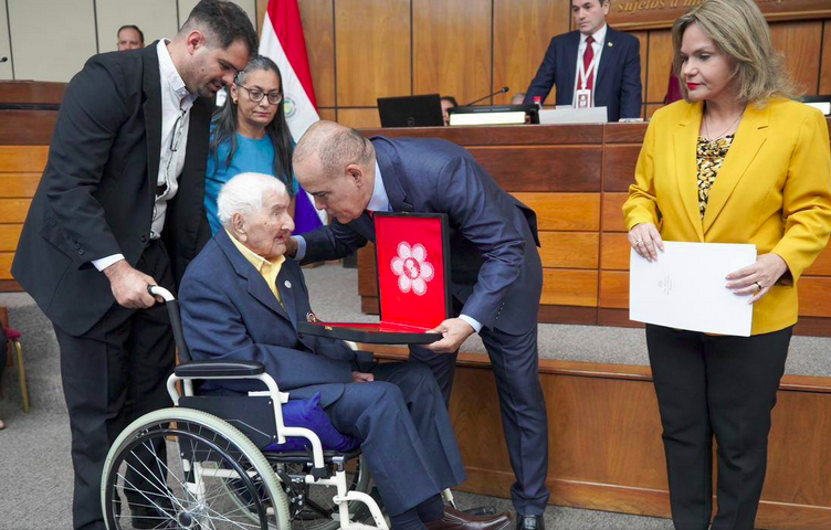 entregaron placa y copia de la Declaración N° 338, “Por la cual la honorable Cámara de Senadores Rinde homenaje de reconocimiento y gratitud, a los soldados Paraguayos de la guerra del Chaco, Don Canuto González y Don Juan Bautista Canteros Silva.